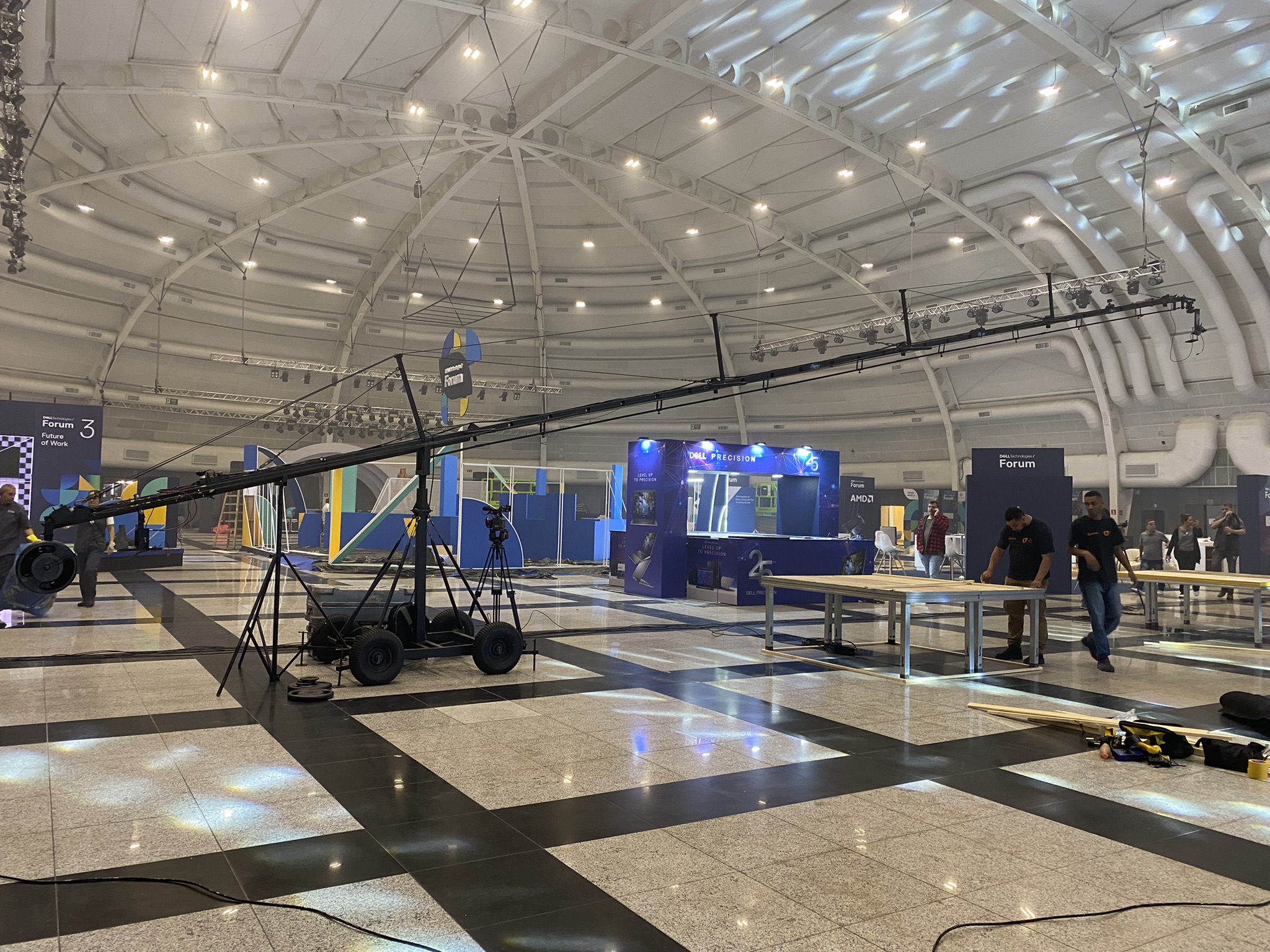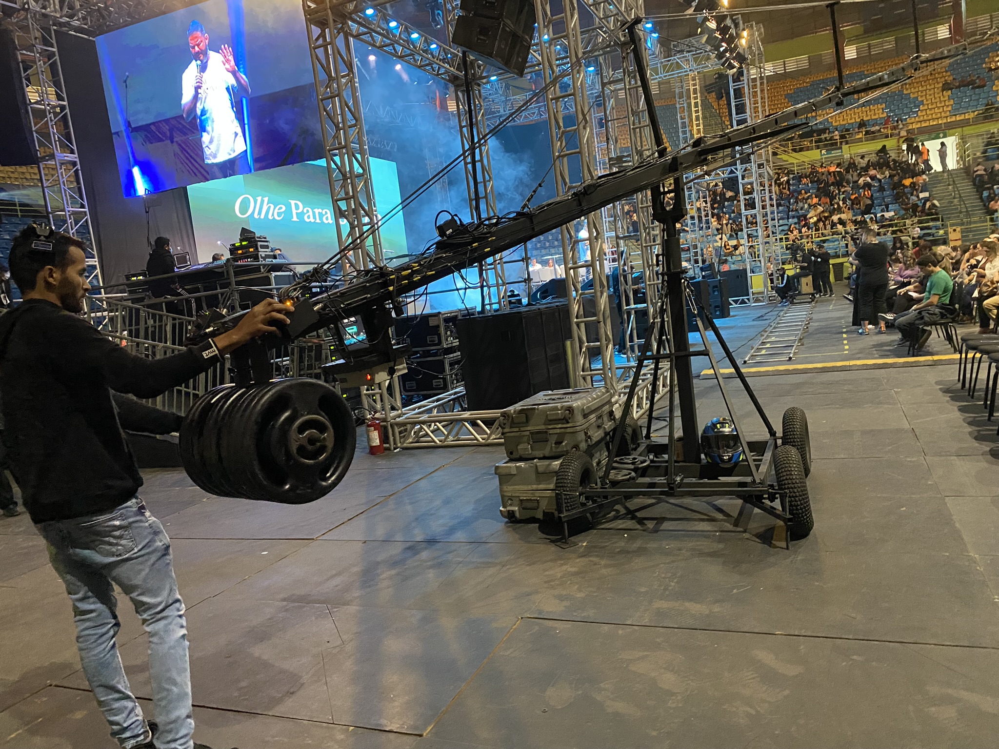 Como todo mega evento, pela eficácia , rapidez, agilidade, tomadas aéreas, precisão e dinamismo, se fez necessário a captação de imagens em movimento e optamos em adicionar uma grua no nosso sistema.